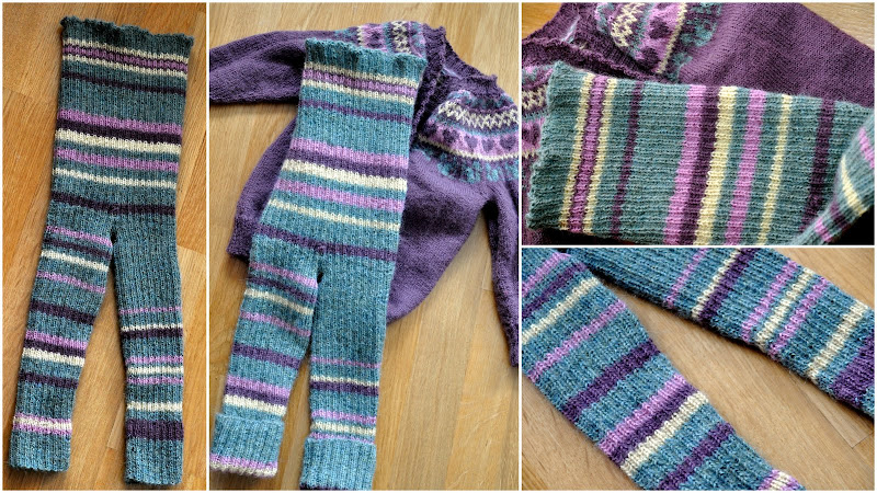 Og nå er vi langt uti mars uten en eneste strikkeoppdatering. Grunnen er ganske enkel, jeg har nemlig strikket noe drit kjedelig i hele februar. 1. februar la jeg opp til buksen som hører til jakken jeg strikket i jula. Tynne pinner, tynt garn og ribbestrikk er kjedelig og da er det lett å finne på noe annet å gjøre. Derfor kunne jeg ikke felle av før 28. februar. Men jeg er veldig fornøyd med resultatet. Syns buksen ble kjempefin. Strikket den i størrelse to år, og litt ekstra lang så da holder den forhåpentligvis en stund. Snuppa kan faktisk bruke den nå, men den er litt stor.Regner med at det blir en fin barnehagebukse til høsten.